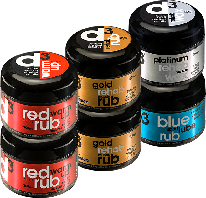 The Three d3 Rubs in Gold, Red, and Platinum are designed to keep athletes, patients, and active individuals moving at their best. Each formulation offers targeted benefits, making them ideal for clinics, pitchside recovery, warm-up, rehab, and everyday activity.