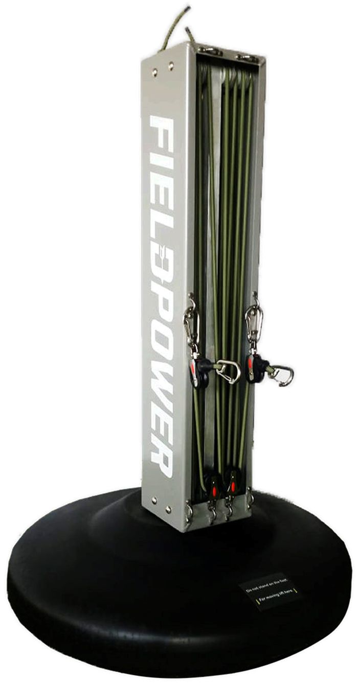 - When positioned on the FieldPower base, the FieldPower rotates freely around its axle, offering 360 degrees movement. The foot can be moved using 2 wheels.